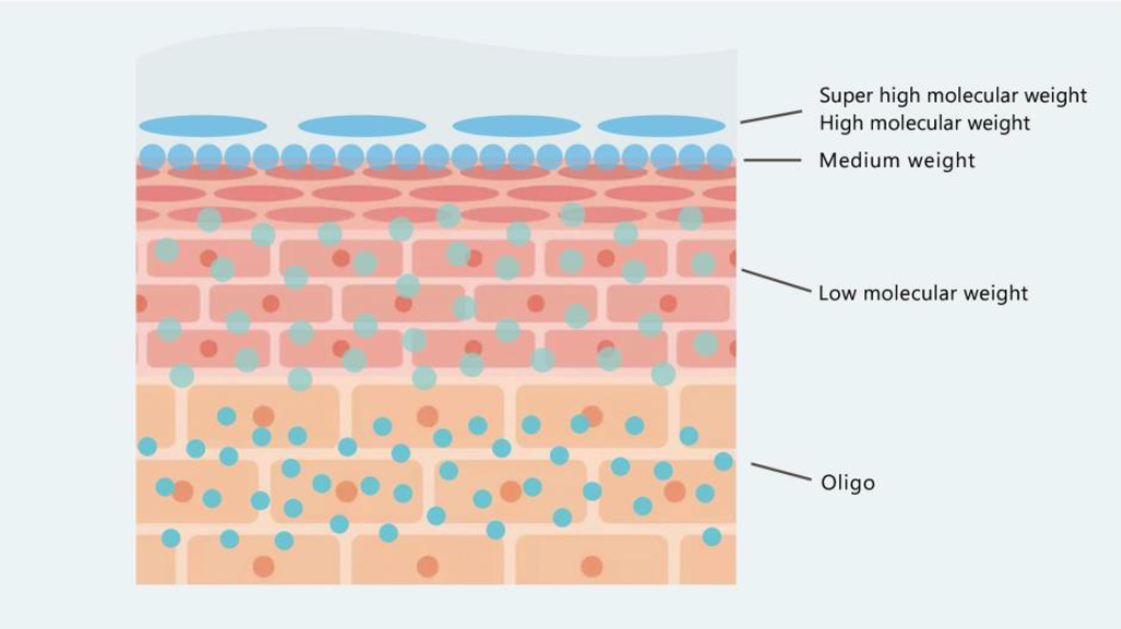 Cấu trúc bọt biển được tạo ra bởi Sodium Hyaluronate có nhiều trọng lượng phân tử dẫn đến làn da mềm mại và giữ nước.