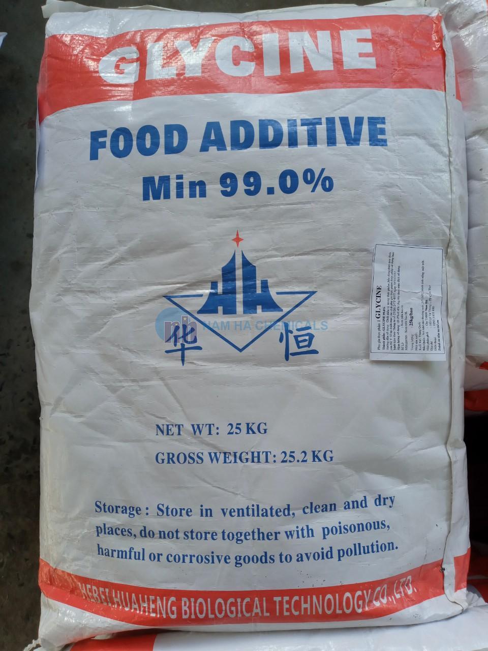 Glycine là acid amin có một nguyên tử hydro. Glycine có dạng tinh thể rắn, là chất kết tinh không màu, có vị ngọt, không phân cực, không quang. Glycine là một trong những phụ gia được sử dụng phổ biến trong thực phẩm với công dụng là chất điều vị, tạo ngọt, tạo màu và mùi Caramel, tăng độ đạm cho nước chấm (nước tương, nước mắm, tương ớt, bột nêm…). Ngoài ra, Glycine còn được ứng dụng làm phụ gia cho thức ăn gia súc và vật nuôi.