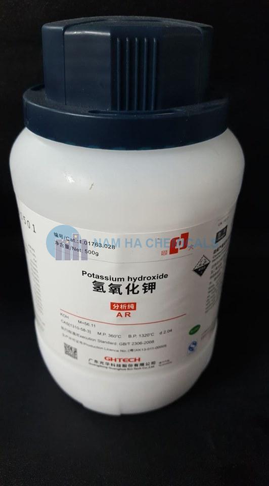 Potassium Hydroxide (KOH) có dạng miếng (vảy) màu trắng. KOH làm trung hòa độ pH của dung dịch chứa nó mà không làm ảnh hưởng đến bất cứ thành phần nào, hay gây bất cứ phản ứng hóa học nào không cần thiết. Bên cạnh đó, nó có thể hòa tan hoàn toàn vào dung dịch mà không làm ảnh hưởng tới khối lượng.